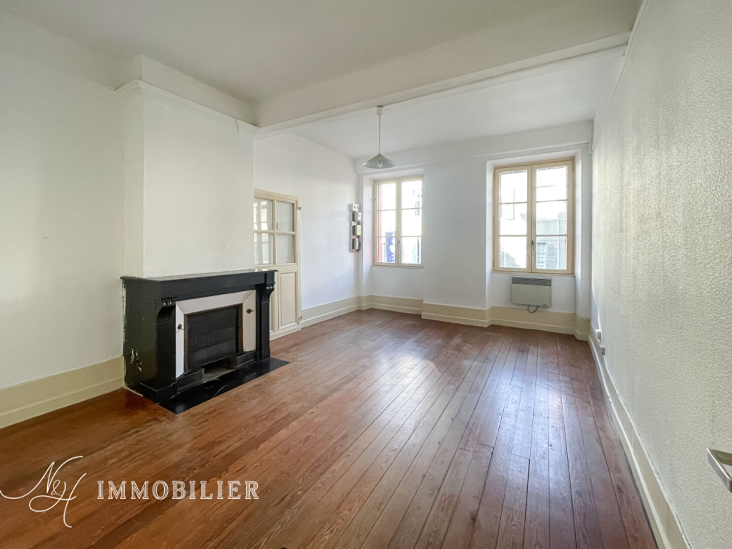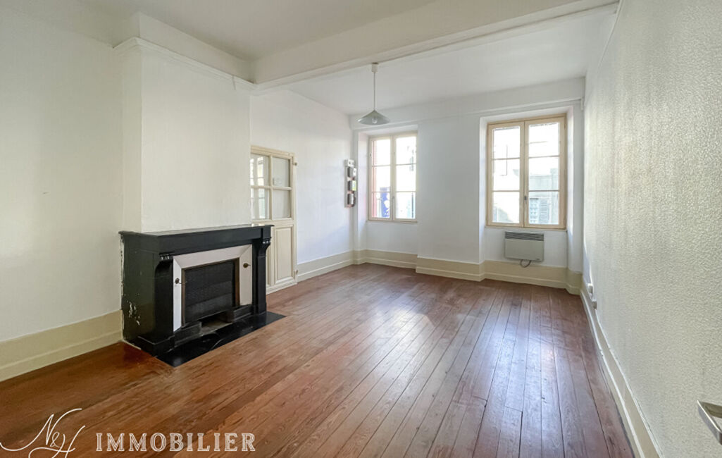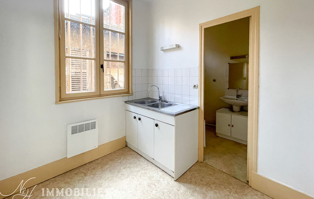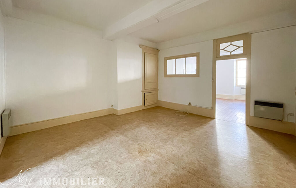 Situé au premier étage, cet appartement de 51 m2 comprend une cuisine, un séjour, une chambre et une salle de bains avec WC. Travaux de rafraîchissement à prévoir.