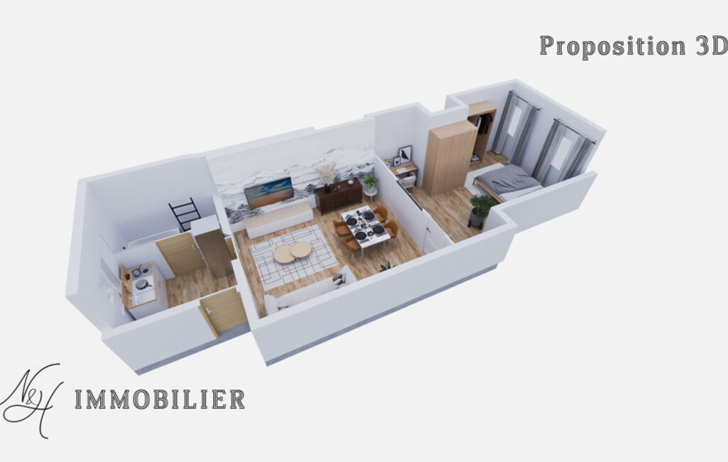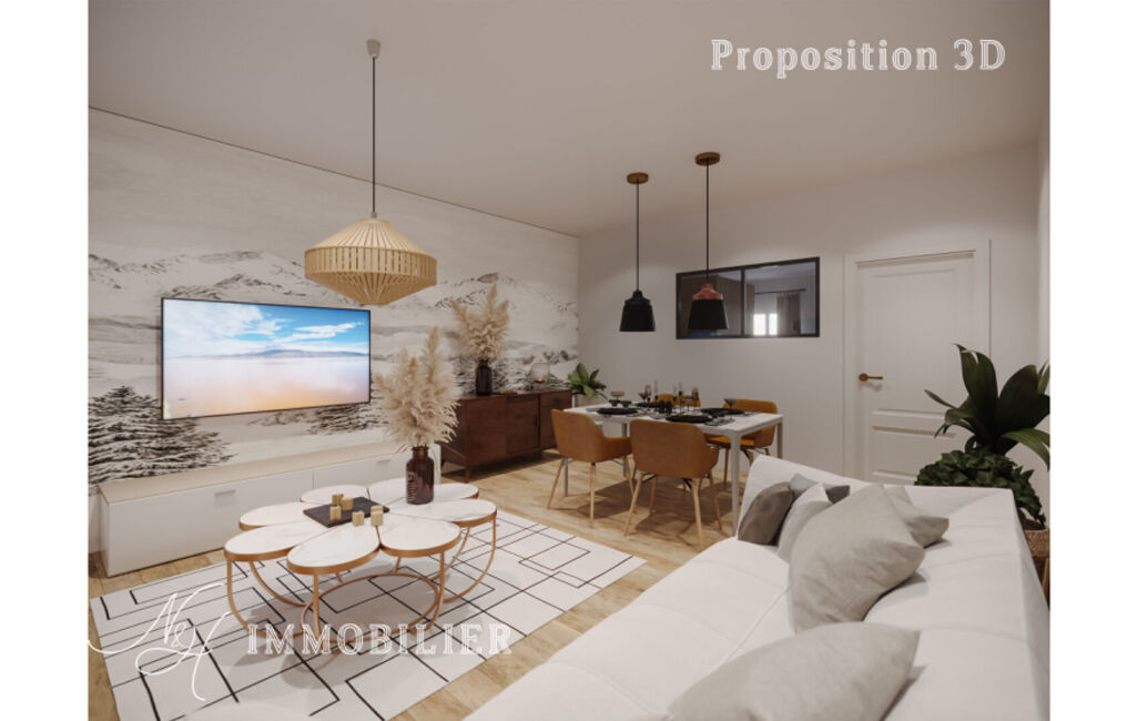 Nous vous proposons un aménagement 3D réalisé par notre infographiste, ainsi que des nouveaux plans en 3D, cela vous permet d'imaginer un nouvel agencement pour disposer d'un nouvel espace de vie.