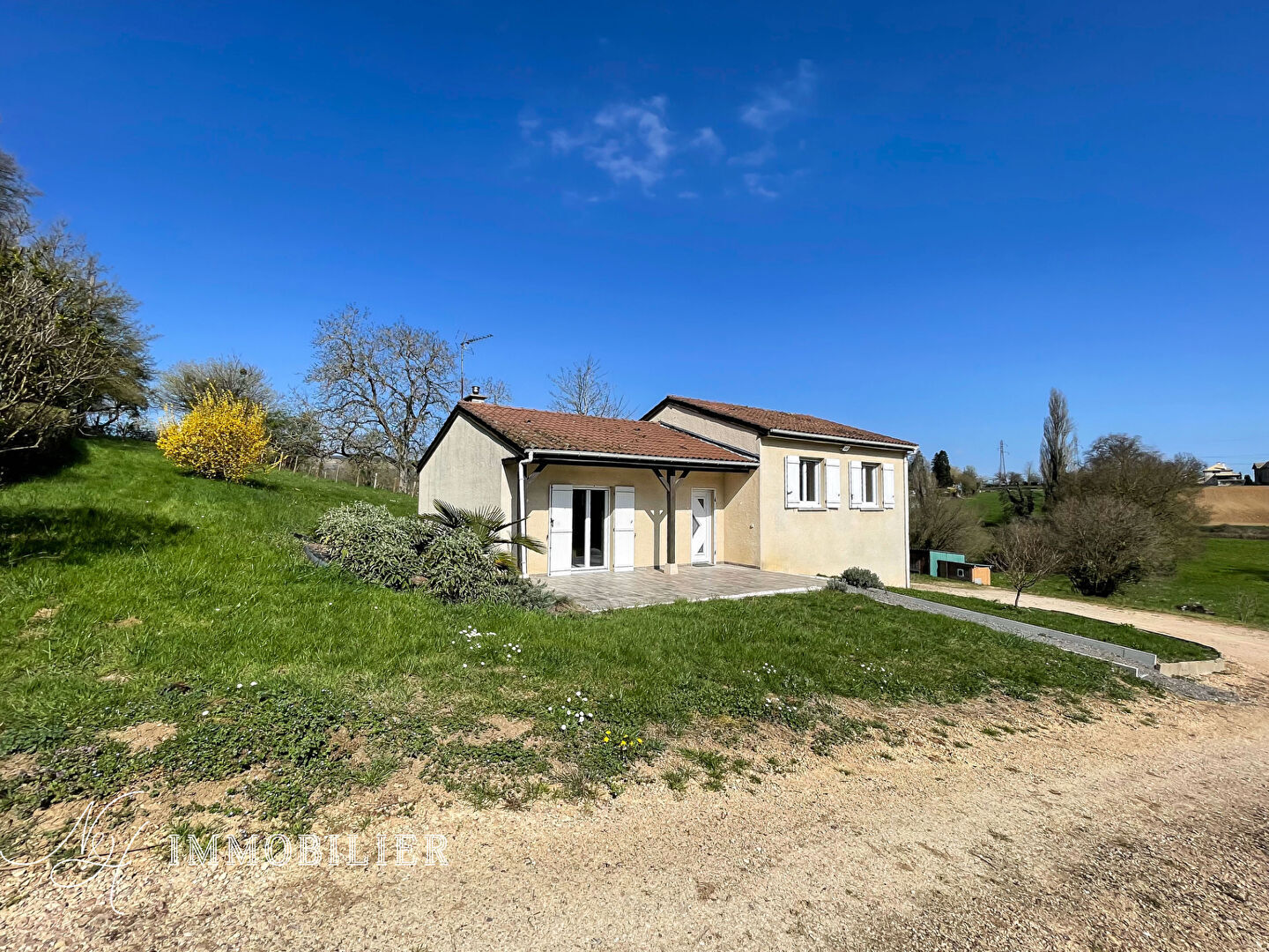 Prestations : chauffage électrique, poêle à granules installé en 2021, menuiseries en double vitrage PVC.